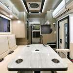▲どのような状況でもリラックスできる快適なリビング空間。最大出力670WソーラーシステムやDC24Vの外部給電コネクターも備わる