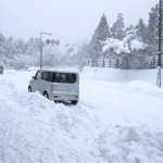 どうしても路外に退避できない場合は、ヘッドライトは点灯させたまま、ハザードをたいて、バックフォグの未装着車ならブレーキを踏み続ける。余裕があるなら三角表示板や発煙筒をクルマの後方に設置したい。なお、クルマを駐めるなら、防雪フェンスや建物の陰など、風雪が直接当たらない場所。猛吹雪の中で駐めると、すぐに雪が積もって身動きが取れなくなる。