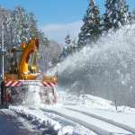 ▲作業中の除雪車は進路を細かく修正するので接近禁止。無闇に近づくと小石が飛んでくることも