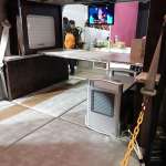 インテリアには12V天井吊り下げ式クーラーを装着し、断熱やデットニングも施されています。キャンプ時はエンジンを切った後も大容量ポータブルバッテリーで電源を確保し、電子レンジやクーラー、ドライヤーなどを使えます。ペット旅を考えている人のために車内にペット見守りカメラを導入することもできるそうです。