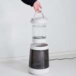 画期的なタンクレス構造の加湿器。上から水を注ぐだけで、人が快適だと感じられる約50%の湿度に。操作で変化するディスプレイにより、空気だけでなく部屋全体を洗練されたものになる。