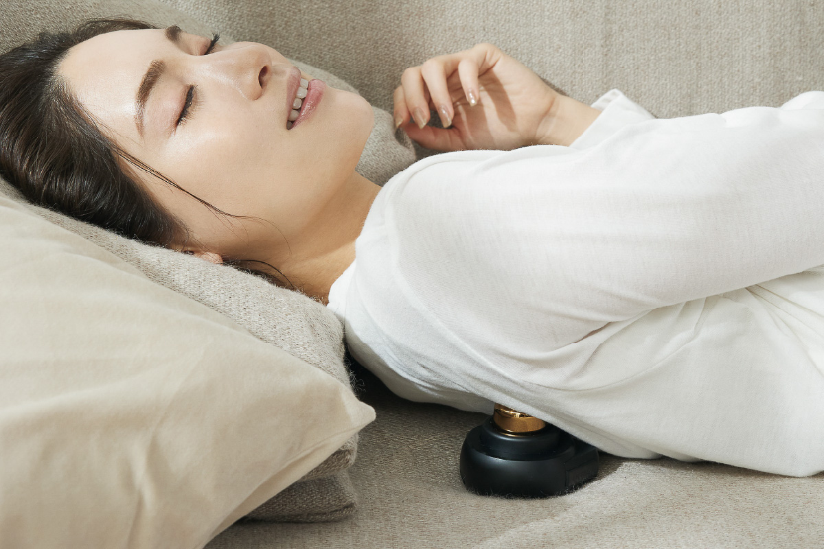 火を使わずに繰り返し利用できる充電式のデジタル温灸器。温熱と刺激を自重で体の奥に届ける特許技術によって血行を改善してコリをほぐし、神経痛・筋肉痛の痛みを和らげていく。