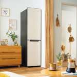 とてもスリムな冷蔵庫で設置場所を選びません。実物はスタイリッシュなデザインで、マグネットカバーを使えば、より個性的なインテリア空間を演出できます(石井さん)