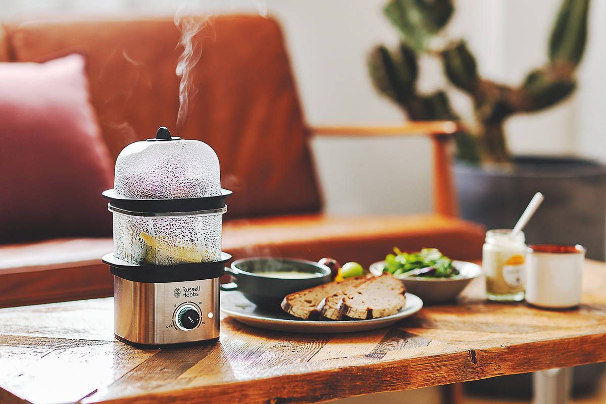 具材を入れてダイヤルを回すだけなので、忙しくて時間がない時などに大変重宝します。また、付属のエッグスタンドを使えばゆで卵も上手に完成。時短家電としても有能ですよ!(室井さん)