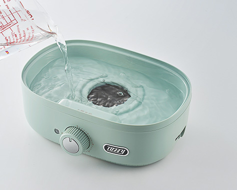 ▲ウォータータンクに水を注ぎ、電源を入れてダイヤルを回せばOK。30分のタイマー機能搭載でほったらかし調理にも対応