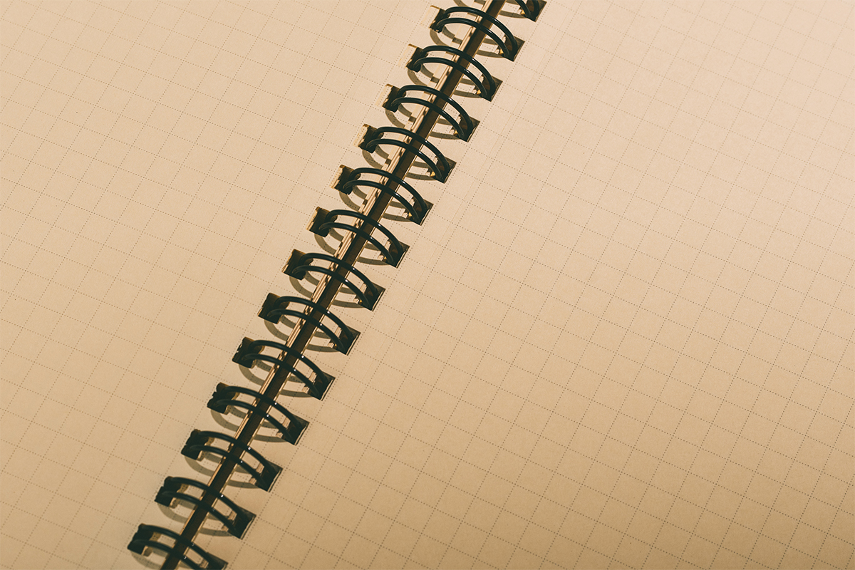 中面は5mm方眼のクリーム色上質紙で、にじみや裏写りが気になりにくいのも実用的。全ページミシン目付きで、巻末にはPPポケットを5枚備えます。書き込み量が確保できるA5サイズは、仕事のメモからアイデア整理まで守備範囲が広い一冊です。