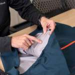 ▲板倉さんも実際に試着して、ストームクルーザーとの着心地の違いや、その軽さを体験!