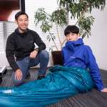モンベルの寝袋の優れたストレッチ性を体験するには実際に寝てみるのが一番、ということで板倉さんも身体を入れてみることに!