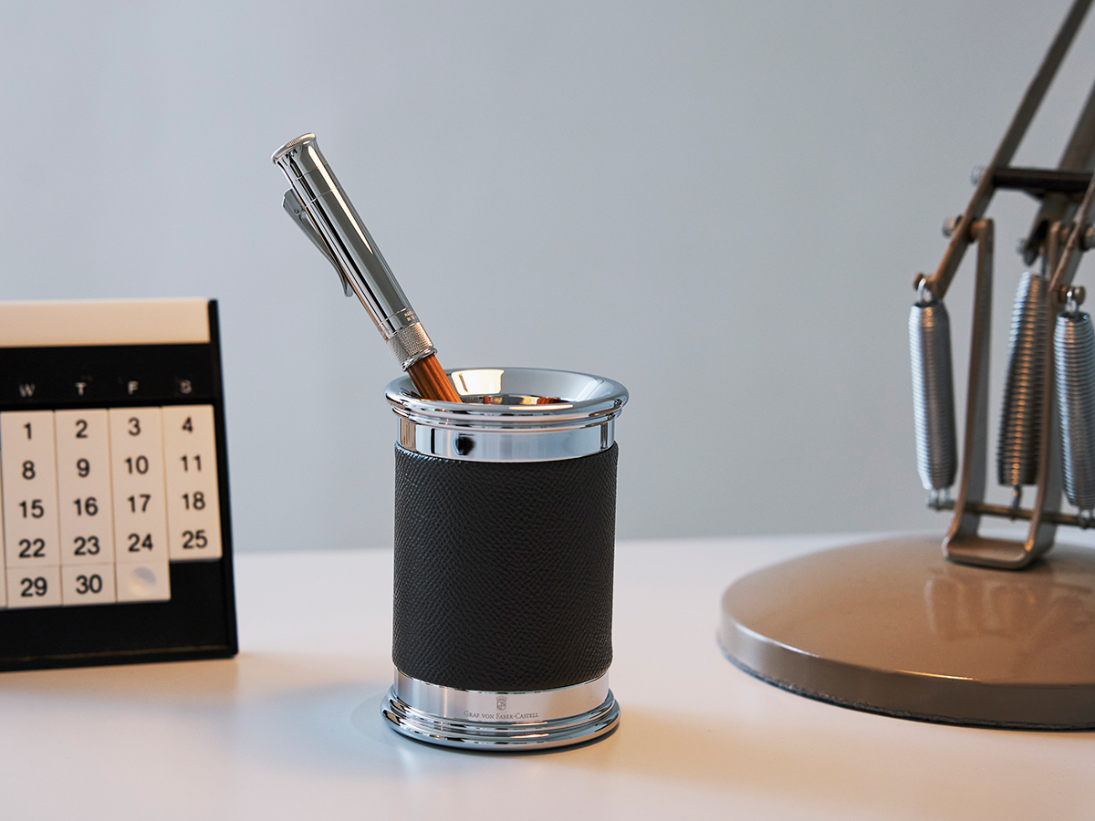 せっかく良い筆記具を使用していても、デスクの上がゴチャついていると印象は台なし。そこで頼りたいのがこちらの「ペンホルダー」です。高品質なイタリアンカーフと程良い光沢のメタルパーツが洗練された空気感。ただ単にきれいに整理整頓するのではなく、インテリアとしての美しさも備えています。控えめ、それでいてエレガンス。まさにファーバーカステル伯爵コレクションの真髄が感じられる一品です。