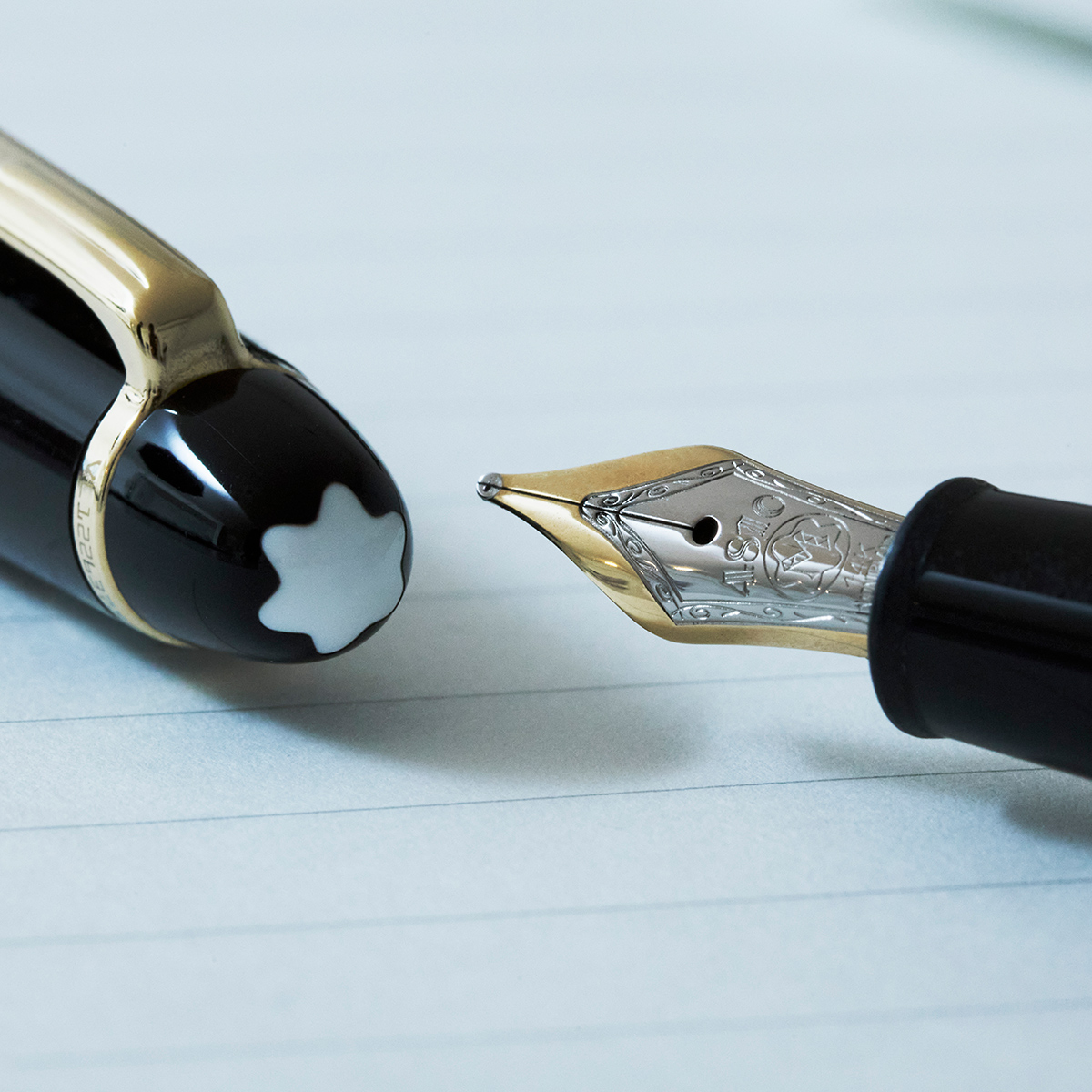 最早説明不要のモンブランの万年筆。そのどれもがクラフトマンシップに溢れ、ドイツ発祥らしい質実剛健さや合理性などが感じ取れます。こちらの万年筆ももちろんそうで、無駄を省いたミニマルなデザインにもかかわらず確かにモンブランのアイテムとわかる美しい仕上がり。ブラックとゴールドの配色がクラシカルかつ気品漂う雰囲気の、まさにマスターピースと呼ぶにふさわしい1本です。