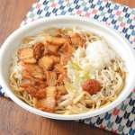千葉・松戸の銘店「中華蕎麦とみ田」監修の豚骨醤油ラーメン。背脂にんにくを現行品の約1.5倍に増量し、より濃厚に。全粒粉入りの小麦を使用した食べ応えのある極太麺は、噛むほどに小麦の風味が広がる。