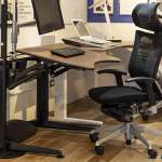 リビングにも馴染む抜群のデザイン性と、座面が自動的にスライドする高機能を両立。右肘のダイヤルで座面の高さ調整も可能。オフィスチェアの威圧感が苦手な方にもおすすめ(伊藤さん)