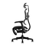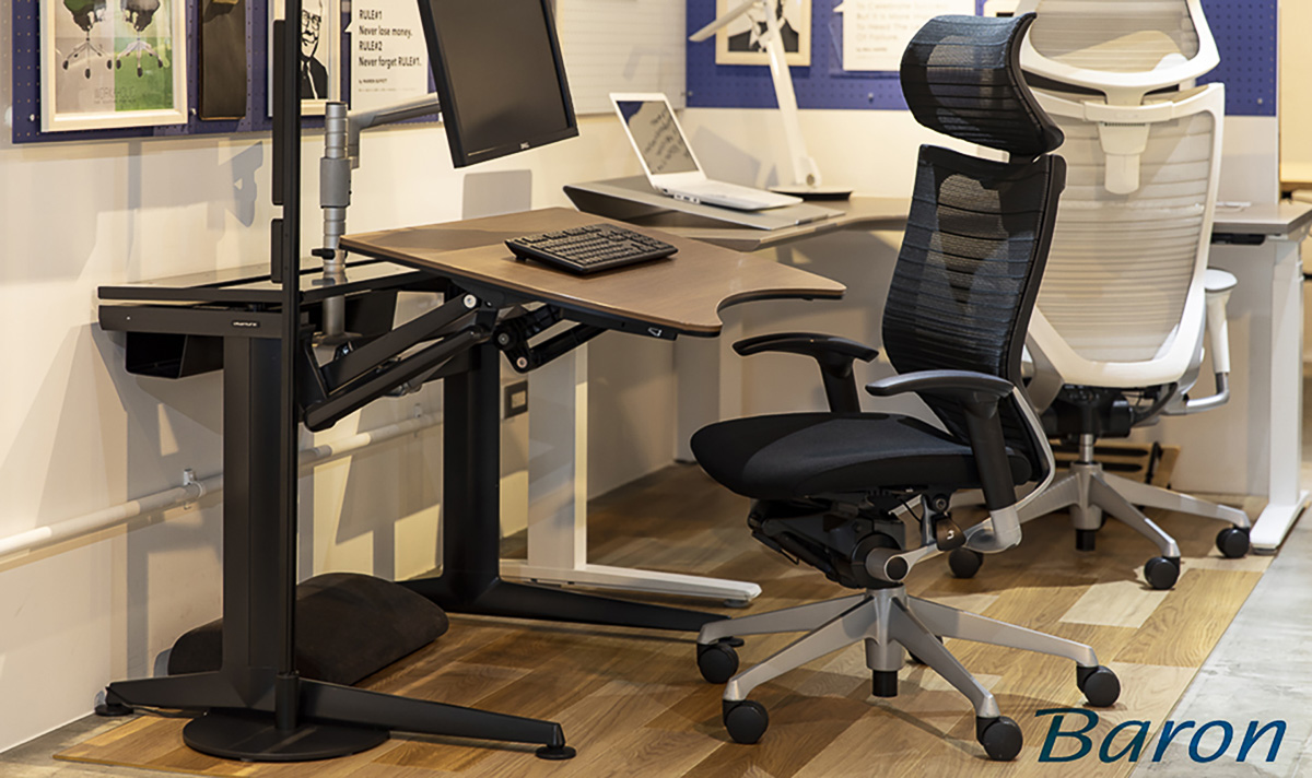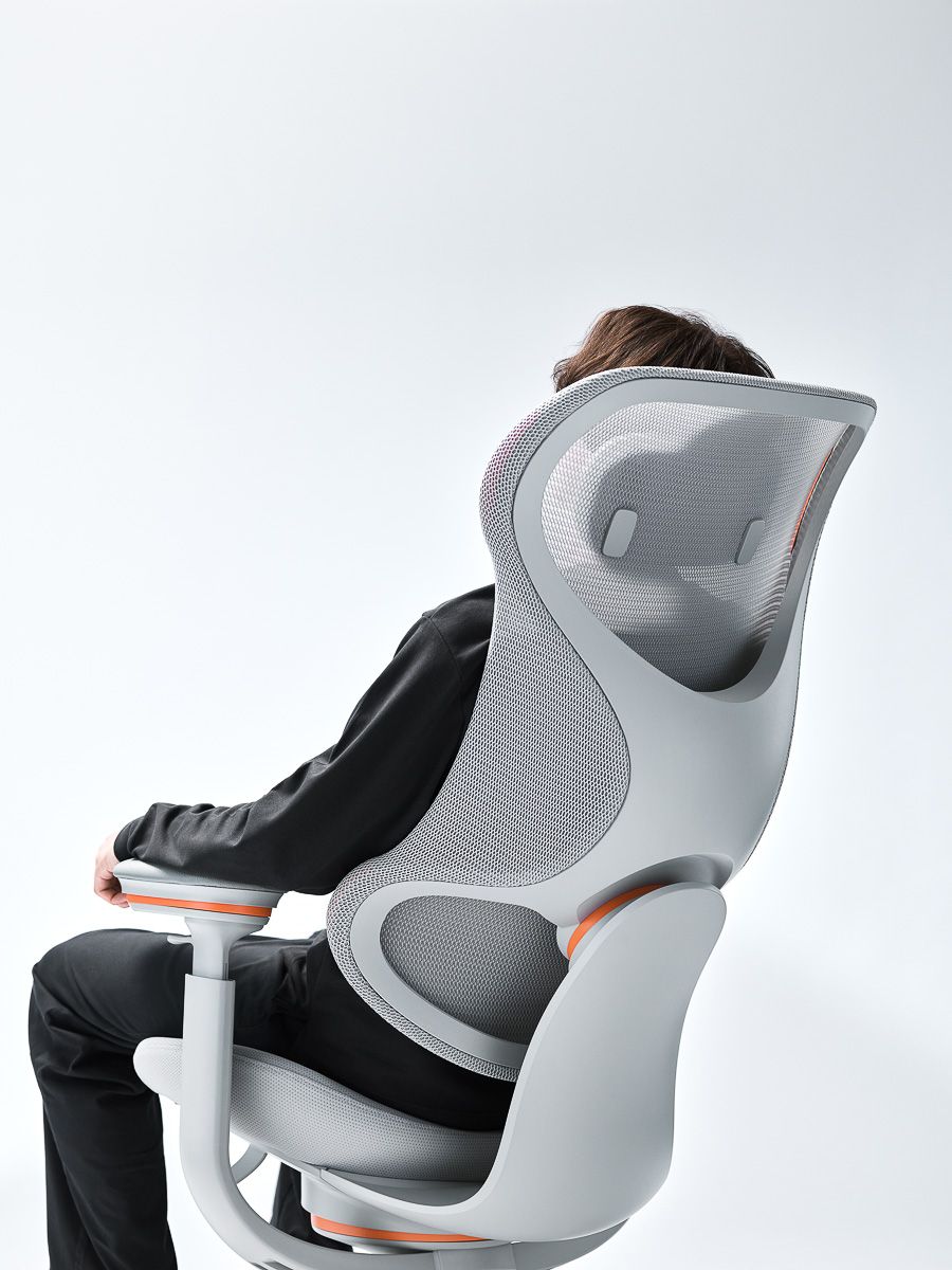 通常モデルに比べ、背もたれの高さが7cm低く設計された別注品。頭部の重さをサポートし、肩凝りの軽減に優れたヘッドレストや、背面のグラデーションメッシュが腰部分をしっかり支え、理想的な背中のラインへ導く。