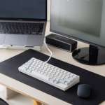 分割型と言いつつも、左右をぴったり合わせれば普通のスタイルでも扱えます。RGBライティングもあって、こだわりのゲーミングデスクに合わせるにも、面白い選択肢です(井上さん)