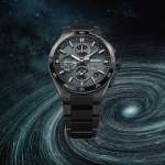 アストロンの由来となる「宇宙」に瞬く星々をデザインソースとした“Starry Sky”モデル。漆黒の宇宙に渦巻く銀河が浮かび上がる様子を、ブラックのケース&ブレスレットとダークターコイズのラメ入りダイヤルで表現。スパイラルパターンの型打ち模様が印象的。