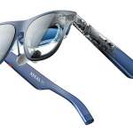 サングラスのような外見ながら、装着すれば巨大なスクリーンが目の前に現れるARグラス。高精細な有機ELパネルを採用し、鮮明なスポーツ映像をプライベートに楽しめる。