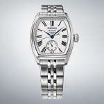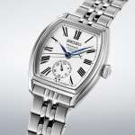 エレガントな佇まいから、ここ数年で人気が高まっているのがトノー型。本作はプレザージュ唯一のトノー型モデルで、その端正なフォルムが上品さをいっそう引き立てている。