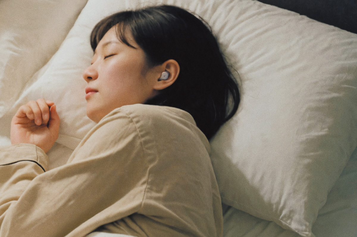 睡眠時の低周波を効果的に遮断し、イヤーチップが高周波もブロックする、睡眠特化型完全ワイヤレスイヤホン。充電ケースがいびきを検知し、最適なマスキング音を自動再生。睡眠を耳から支える最新テクノロジーの決定版。