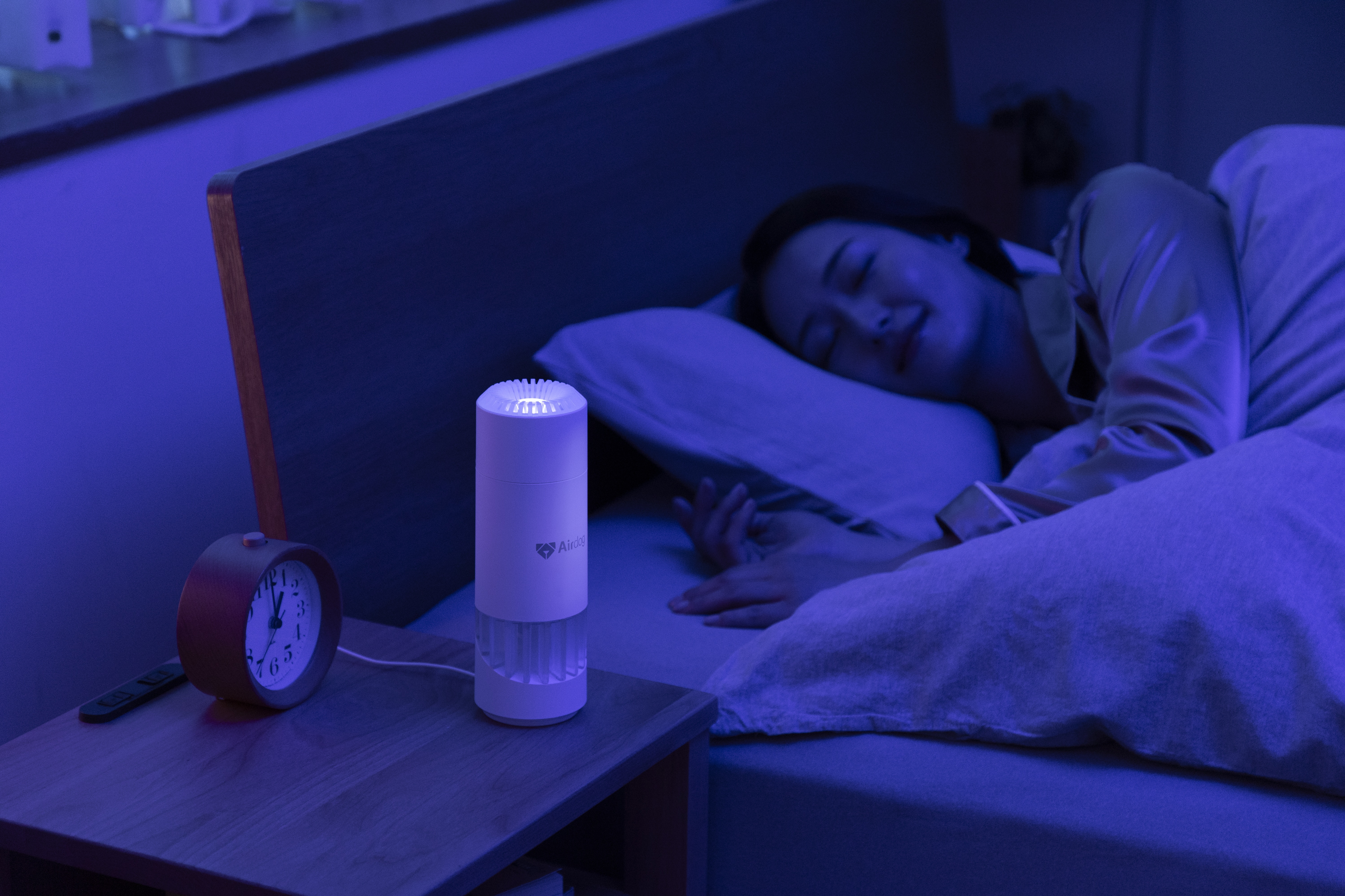 ムードライト付きの空気清浄機は、ただ空気をきれいにするだけでなく、眠るための空間づくりまで考えた1台。目覚ましとしても使え、寝室用としての完成度が高いですね