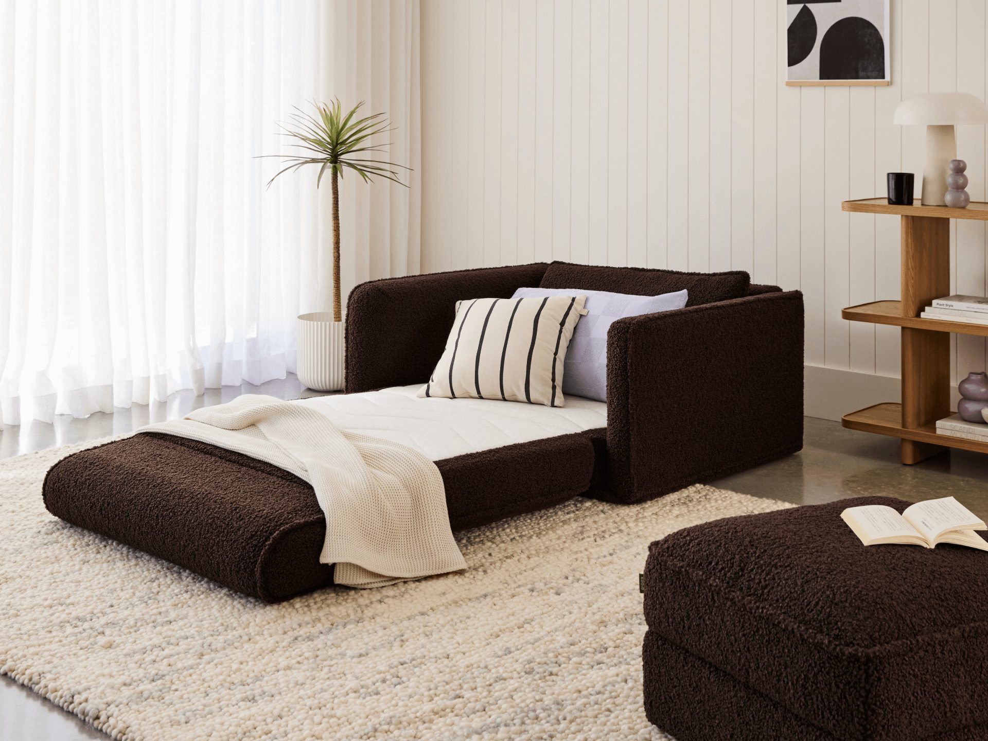 限られた空間を有効活用しながら、寝心地にも妥協したくない。そんな願いを叶えるのが「コアラソファーベッド CUSHY(シングル)」(10万9900円〜)です。普段は洗練されたデザインの1人掛けソファとして活躍し、必要に応じて座面を引き出すだけで、広々としたベッドに早変わり。コアラマットレス独自開発のクッション材が、ソファとしての快適な座り心地と、ベッドとしての快適な寝心地を両立しています。
