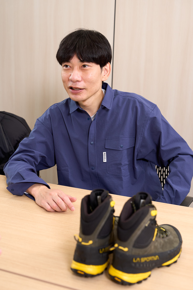 マーケティングや広報業務を担当。プライベートでも登山をする山好きで、もともと愛用しているラ・スポルティバの「TX5」の履き心地に惚れ込み、それをきっかけに入社したのだとか。