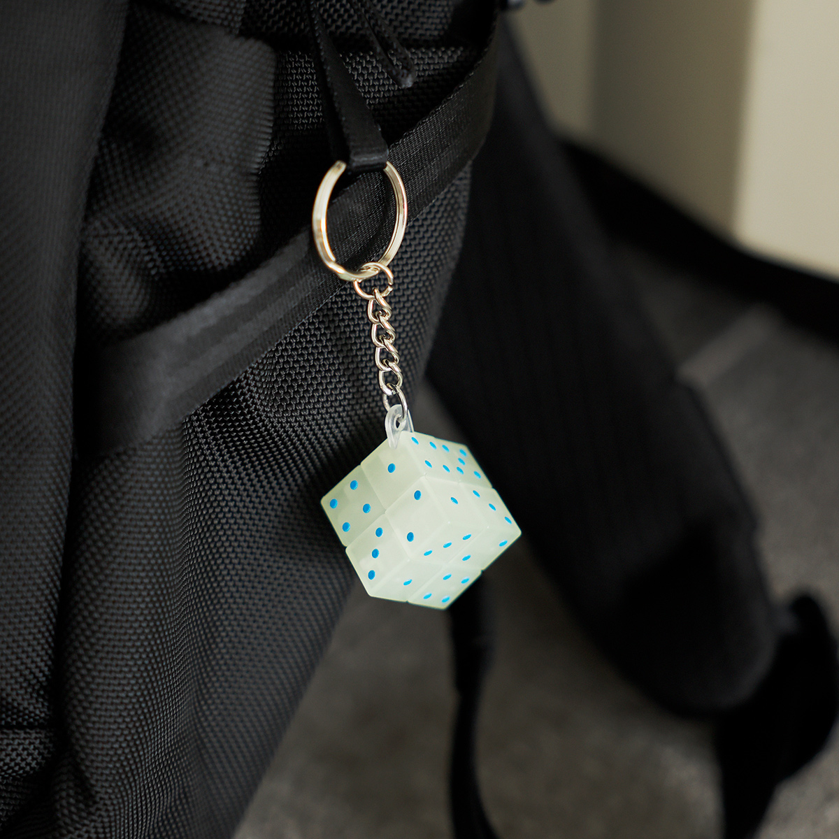 このハイタイドのサイコロ柄キーホルダーは色味も落ち着いていて、さりげなく利いたブルーがほんのり爽やかな雰囲気。立体パズルになっているので待ち時間の暇つぶしとしても良さそうです。ちなみに蓄光素材を使用しているため、暗所では光るというおまけ付き。注目度も上がりますし、帰宅時などの安全性もアップします。
