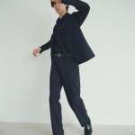 ▲カラーはネイビーのほかチャコールもラインナップ。セットアップと好相性の高機能ポロシャツも展開し、季節やシーンにあわせて選択可能だ