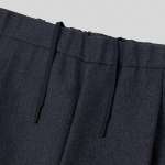 ▲パンツはベルトではなくコードでフィット感を調整可能。カチッとしすぎないほどよいイージーさで単体での着用も◎