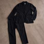 撥水性のあるプロテクションを備えたセットアップ。軽量でストレッチ性に優れ、シワにもなりにくいナイロンスパンデックス生地を採用。ほどよくカジュアルながら、ビジネスユースにも使えるベーシックなデザインだ。