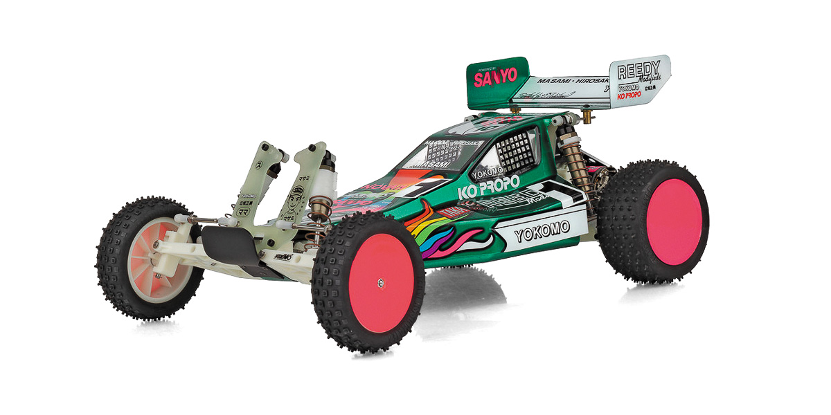 1980年代前半に隆興しつつあった1/10電動バギーレースに向けてヨコモが開発した自社初のレース用4WDバギー。ラダーチェーンを利用した4WDシステムをはじめ、前後モノショックサスペンションなど、各部の特徴も忠実に再現されている。