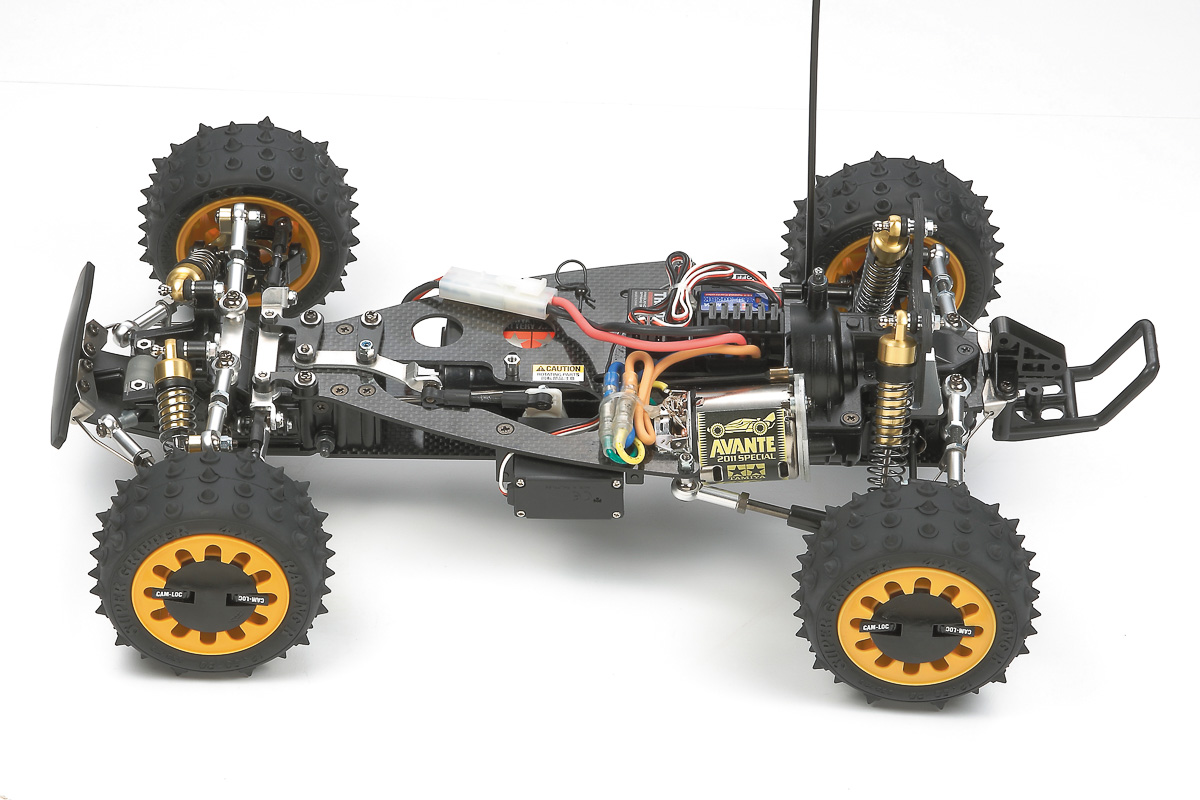 タミヤがビッグレース参戦も視野に入れて開発し、1988年に発売したのがアバンテ。意欲的なデザインを各部に投入した人気のマシンが2011年に復刻販売され、現在でも高い人気を保っている。