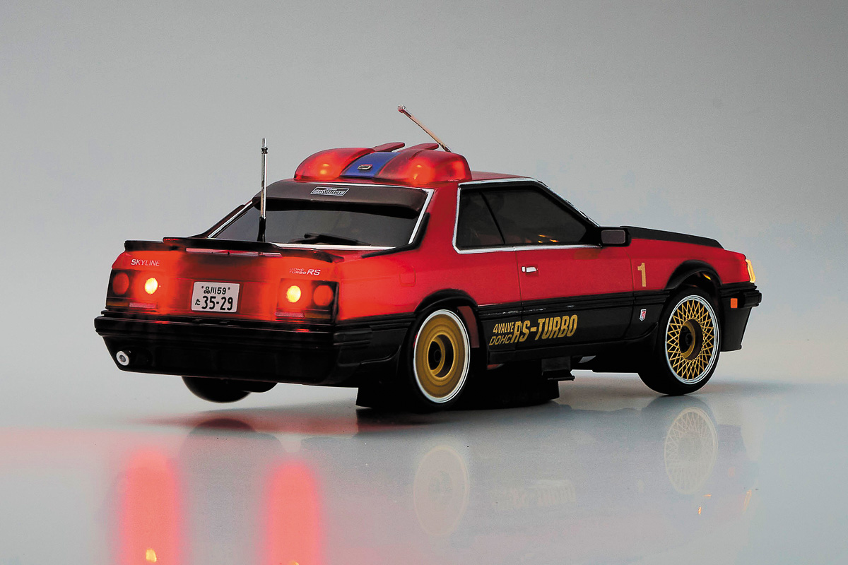まさしく「インドアRCカーの決定版」である。熱き血潮たぎる男たちの刑事ドラマ『西部警察』。その劇中車として羨望のまなざしを浴び続けてきた2台のマシンが京商ファーストミニッツとして爆誕したのだ。