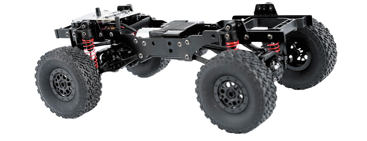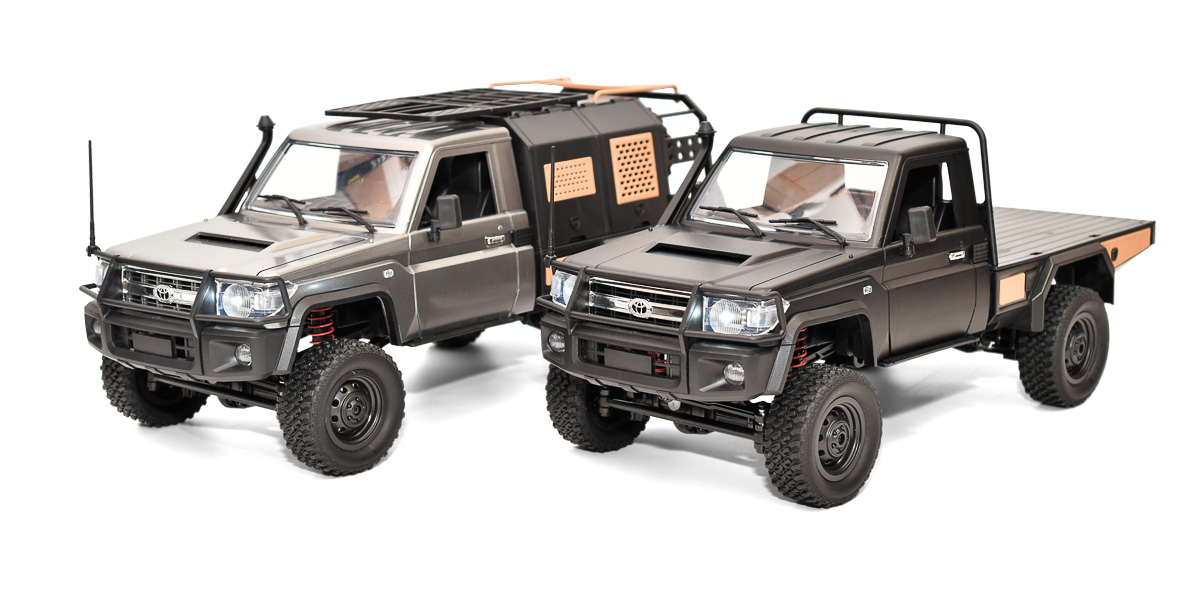 1/12と1/16とスケールの相違こそあるものの、いずれも手応え、見ごたえのある大型RCカーだ。春からのアウトドアシーズンには相棒として連れ出していただきたい。岩場を超える、丸太の上を走らせる等、操縦テクニックを磨くのもまたFUNである。この2台のRCカーで、アウトドアクローリングの興奮を君の手に!