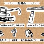 ▲クローリング性能を高めた新設計シャーシを採用。図は本セット付属品一覧だ