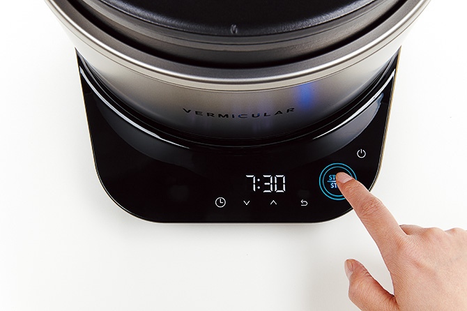 ▲炊飯器のようにタイマー設定が可能。さらに30℃から95℃まで1度刻みの温度設定もでき、低温調理にも対応する