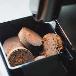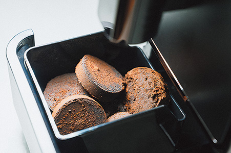 ▲抽出後のカスは自動で圧縮・回収。フィルター不要で捨てるのも簡単。排水トレイと抽出ユニットも取り外せて丸洗いできる