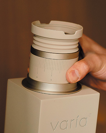 ▲目盛りを回すだけで、挽き目を10ミクロン刻みで細やかに調整でき、味の再現性を高める