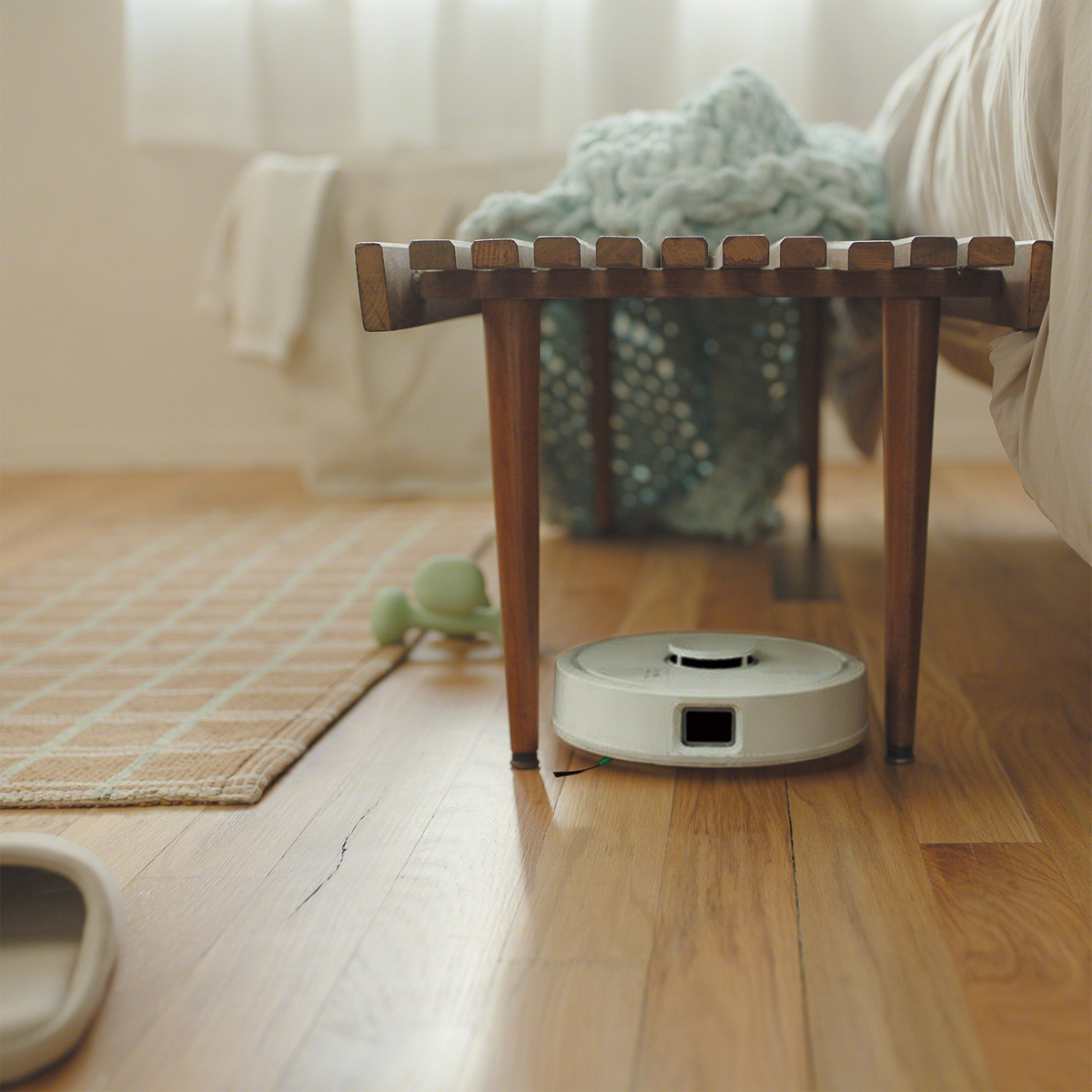 通常のロボット掃除機が入りきれない場所でもコンパクト設計なのでしっかり対応してくれるのがおススメポイントです!(清野さん)