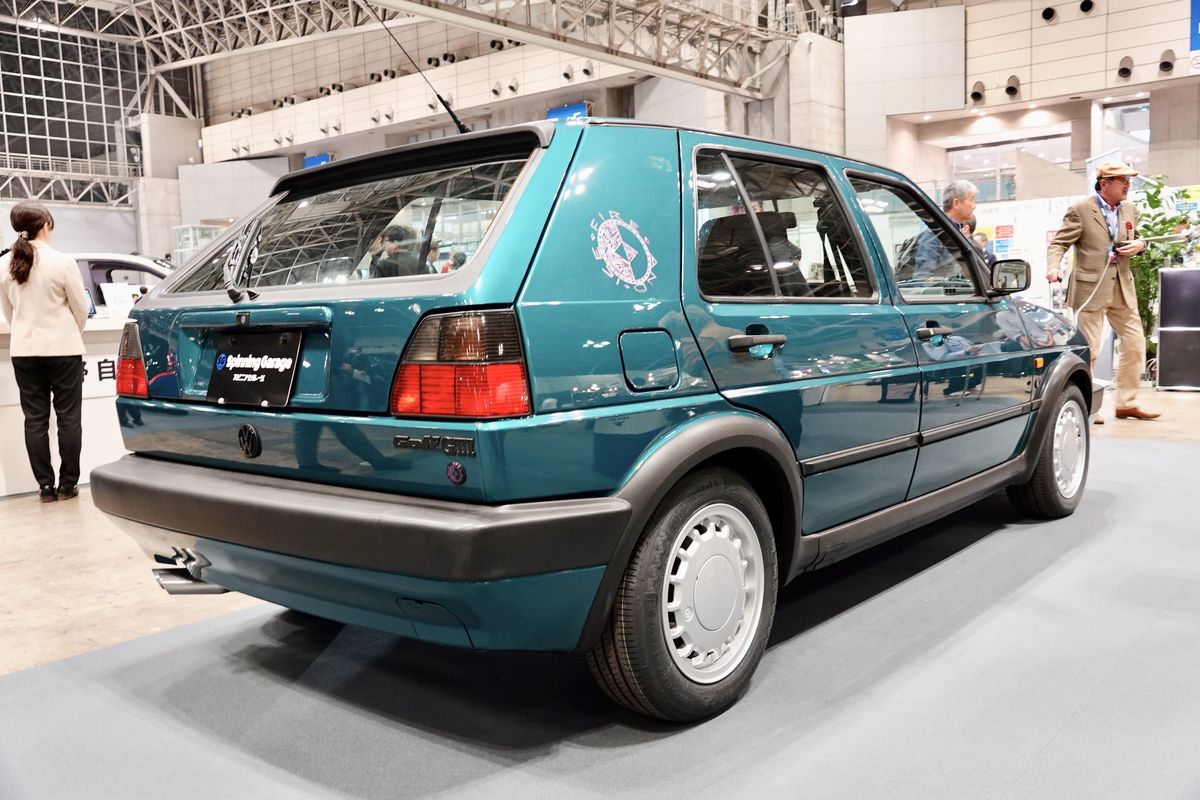 展示車両は映画『サマー・シュプール』(原題『FIRE, ICE AND DYNAMITE』)の公開を記念して発売されたGTIファイア&アイス。日本での販売台数はわずか20台という希少モデルです。このクルマには599万8000円、もう一台展示されたGTI-16Vには799万8000円のプライスタグがつけられました。これは良質なベース車を選定したうえで徹底的なレストアを施しているからだそう。
