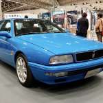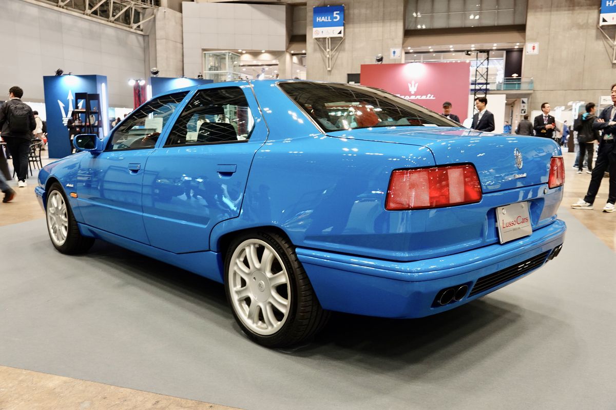 用意されたエンジンはV6ターボとV8ツインターボ。この個体は鮮やかなブルーが特徴的。この色はもともと2ドアクーペ「ギブリ」のスパルタンモデル“ギブリカップ”に設定されたもので、“ギブリカップブルー”と呼ばれます。最初のオーナーがこの色に魅せられ、マセラティ本社にギブリカップブルーの「クアトロポルテ」の製作を依頼。トランスミッションも日本に輸入されたのは4ATのみでしたが、これは6速MTになります。