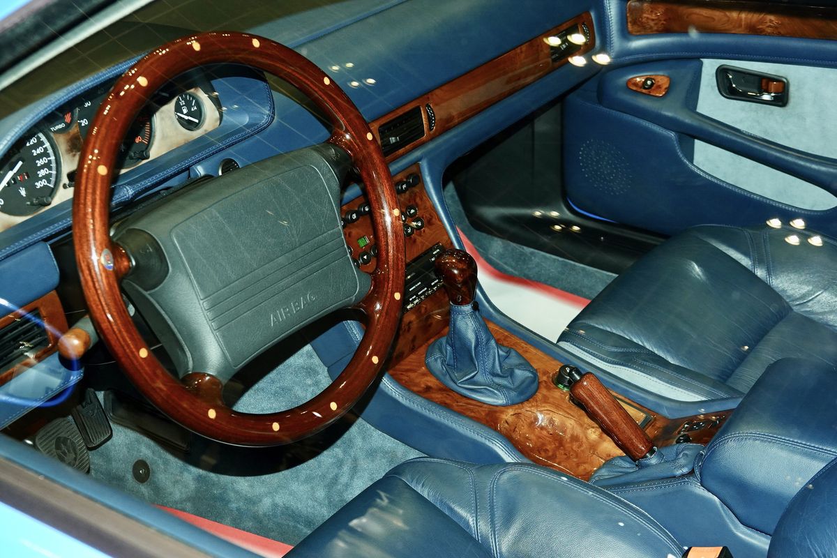 インテリアはエクステリアと共通するブルーレザーで仕立てられています。ちなみにマセラティといえばインパネ中央に配置されるアナログ時計を連想する人もいるはず。ただ、4代目クアトロモデルの前期モデルには装備されておらず、フェラーリ傘下に入った後に行われた1998年のマイナーチェンジでアナログ時計が装備されるようになりました。