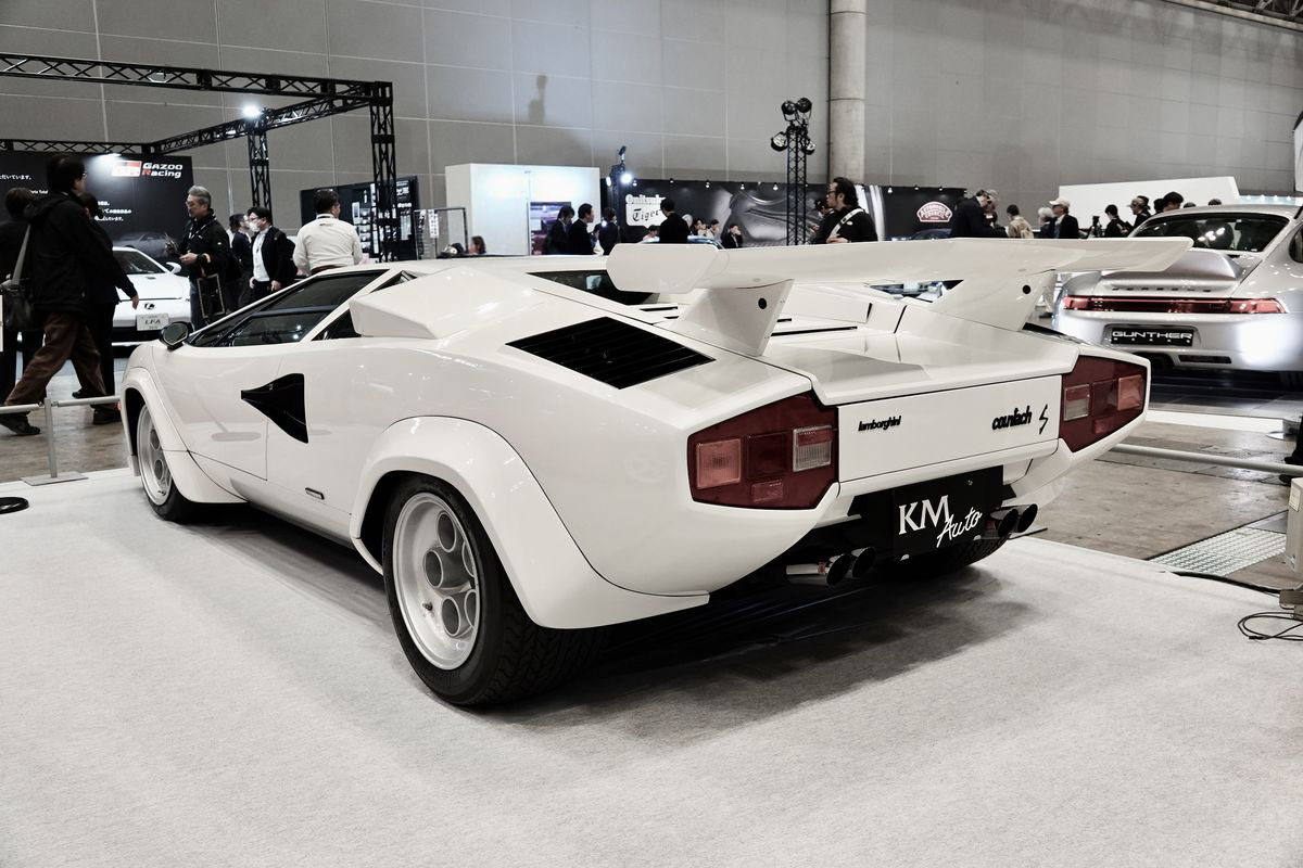 今回出展されたLP400Sは1978年に登場。フロント205/50/R15、リア345/35R15というタイヤを履くために前後オーバーフェンダーを装着。リアの大きなウイングはオプションで用意されたものだったそうです。搭載エンジンは3.9L V型12気筒で、最高出力は375ps、最大トルク41.8kg-mを発揮しました。