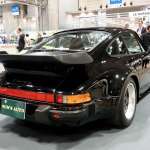 今なお世界中に多くのファンを持つ「911」。今回会場で見つけたのは、1975年にフルモデルチェンジされた930型。アメリカの法規制に対応するため大型のバンパー(5マイルバンパー)が装着されたモデルです。930型は1984年に全グレード3.2Lエンジンが搭載されます。展示車両は大型のオーバーフェンダーになるターボルック。ワイドなボディと大型のリアウイングは今見ても迫力があります。