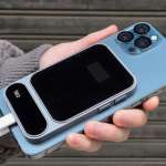 ▲スマホに貼り付けることで、ケーブルのわずらわしさを解消した革命児。パススルー充電対応で、本製品を使いながらスマホの充電もできる