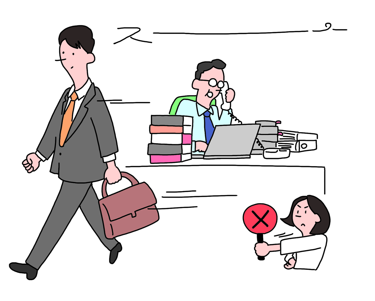 また、上司が電話で話をしているときも同様です。声は発せずとも、相手の近くにいき、「お先に失礼します」など、口を動かして会釈すればいいだけの話。メモをおいておくとさらに丁寧です。先にあいさつは「先手必笑」と申し上げましたが、自分側からアクションを起こしておいて悪いことはありません。自分はやるべきことはやった、という姿勢が大事です。