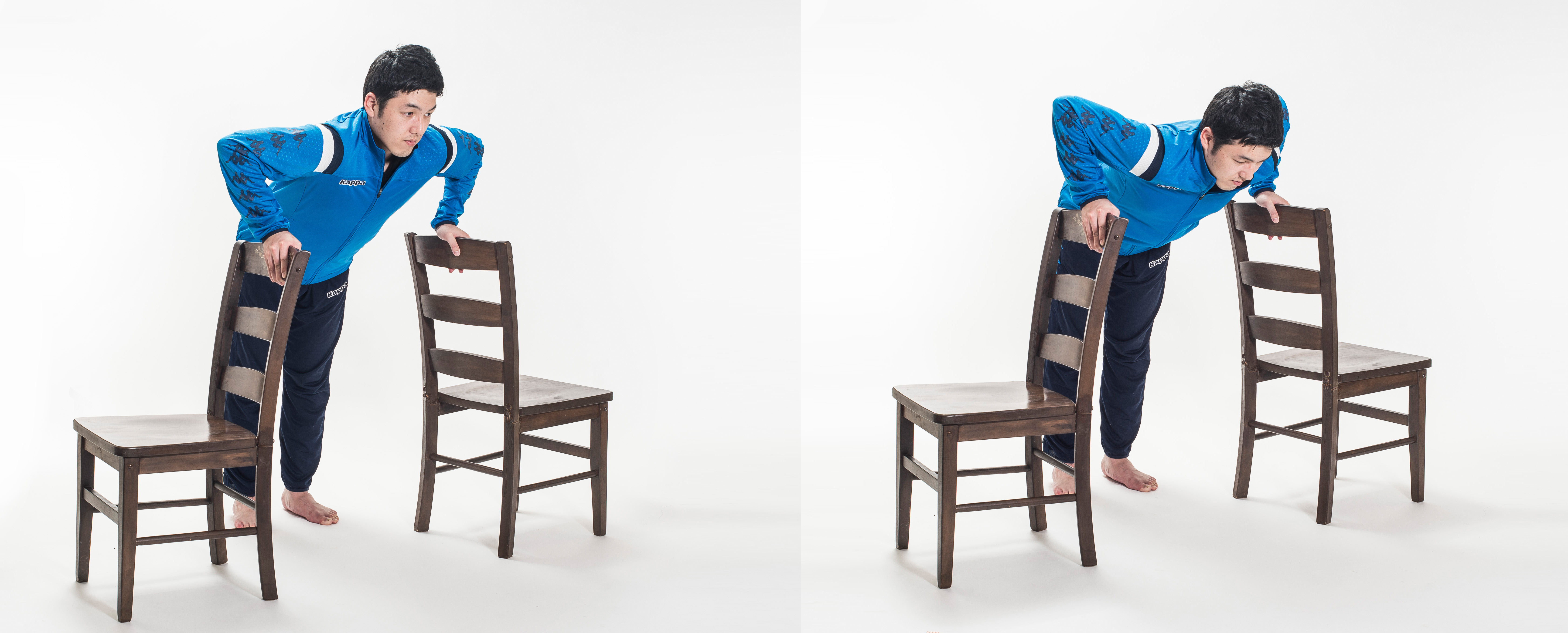 注意点としてはまず、イスや台が安定していること。やっている途中に動いてしまったりすると、思わぬケガの原因にもなります。イスや台の強度と床の滑りにも気をつけてください。