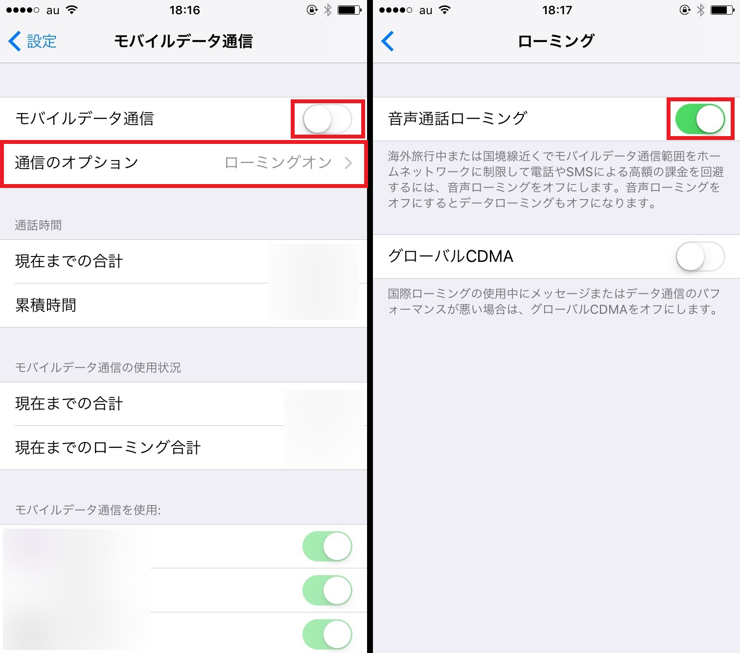 何が起こるかわからない海外旅行。そういった不安があっても当然です。電話の発着信とSMSだけを利用するには、「設定」から「モバイルデータ通信」の設定を確認しましょう。ここでは、auのiPhoneを使って説明します。