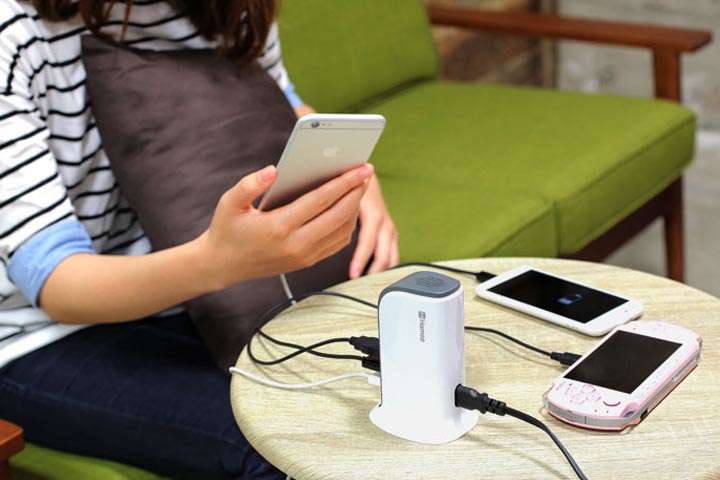 スマホだけでなく、タブレットやデジカメなどもばんばん充電できる高出力USB充電器。ポートが6つあり、すべてが2.4A対応。iPadなどのタブレットは2.1Aないと充電できませんが、これならどこに挿してもOK。また、挿したデバイスを自動判別して出力をコントロールしてくれるので、高出力に未対応の機器を挿しても破損の心配がありません。詳しくはこちら。
