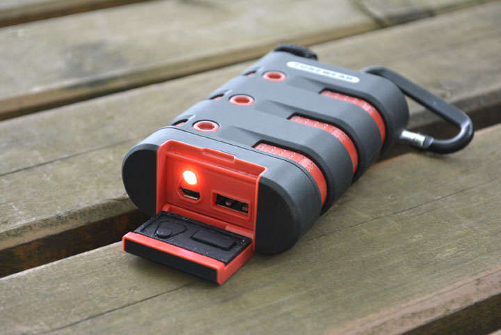 アウトドアや、災害時などの備えに適したタフなモバイルバッテリー。防水性能が高く、1mの高さから落としても問題なし。容量は、iPhone6なら約3回フル充電できる9000mAh。出力が2.1Aなので、iPadなどのタブレットも充電できます。詳しくはこちら。