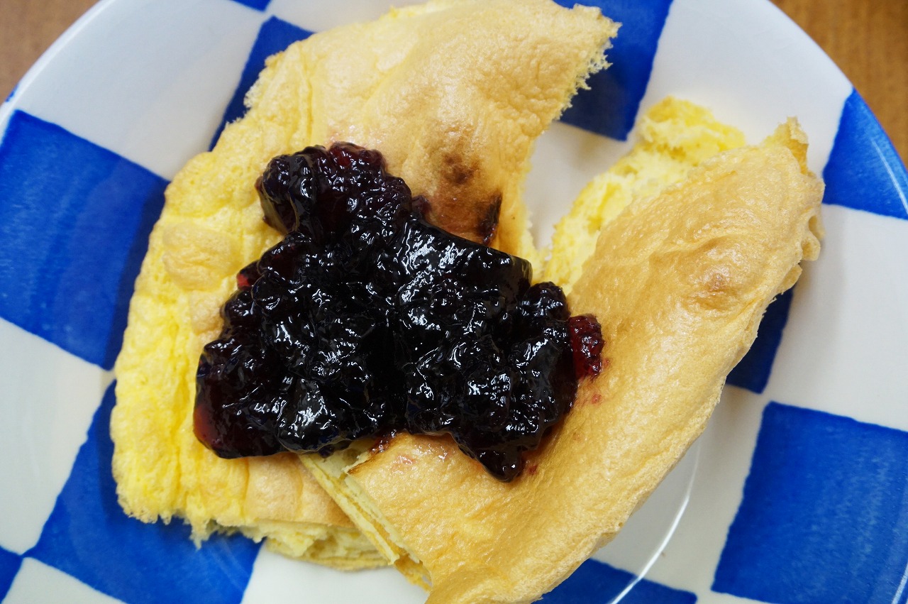 ちょっとだけ糖質制限中、という方にはジャムやヨーグルトとの組み合わせもオススメ。こちらはブルーベリージャムを乗せています。もちろん、ジャムののせすぎは禁物です!